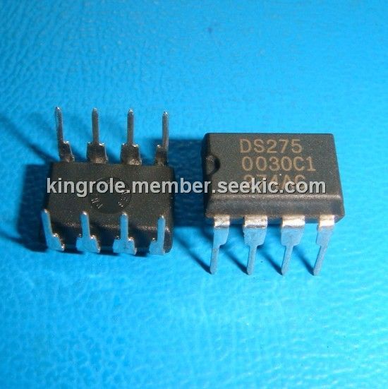 DS275 features: (1)Low-power serial transmitter/receiver for battery-backed systems; (2)Transmitter steals power from receive signal line to save power; (3)Ultra-low static current, even when connected to RS-232-E port; (4)Variable transmitter level from +5 to +12 volts; (5)Compatible with RS-232-E signals; (6)Available in 8-pin, 150 mil wide SOIC package (DS275S); (7)Low-power CMOS.