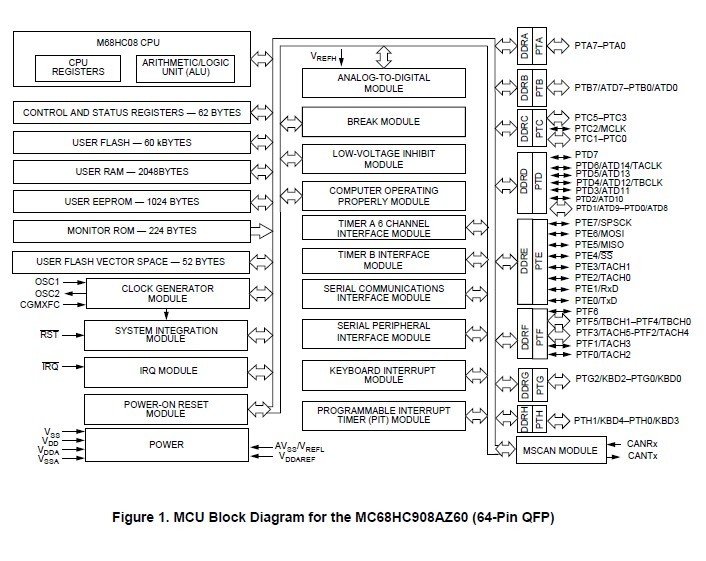 The MC68HC908AZ60CFU is a member of the low-cost, high-performance M68HC08 Family of 8-bit microcontroller units (MCUs). It is based on the customer-specified integrated circuit (CSIC) design strategy. All MCUs in the family use the enhanced it central processor unit (CPU08) and are available with a variety of modules, memory sizes and types, and package types.